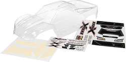 Číra nenafarbená karoséria pre RC model auta Traxxas X-Maxx. Súčasťou balenia sú samolepky a krycie masky na zakrytie okien.