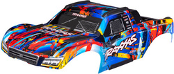 Traxxas karoséria Maxx Slash Rock n' Roll, hotová, nafarbená, zostavená vrátane vnútorného rámu a západkového systému, s aplikovanými obtlačkami. Karoséria je priamo pripravená na montáž na Váš model.