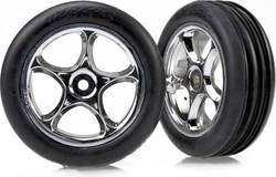 Kompletné predné kolesá pre autá Traxxas Bandit. Chrómované disky s pneumatikami Ribbed. Tvrdosť zmesi pneumatiky je mäkká.