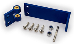 Traxxas kormidlový servo: Spartan SR. Modrý eloxovaný hliníkový držiak kormidla a kormidlový čap s nerezovými montážnymi skrutkami 4x14 mm (4) a 4 mm poistnými maticami (2).