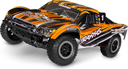 Traxxas Slash je RC model auta 1:10 s náhonem 2WD, ktorý jazdí rýchlosťou až 48 km/h. Je plne zostavený a pripravený na jazdu ihneď po vybalení z krabice. Poháňa ho výkonný stejnosmerný motor Titan 550 12T s regulátorom XL-5. Jednoduchá RC súprava Traxxas TQ 2.4 GHz poskytuje precíznu mechaniku pre presné riadenie. Obsahuje NiMH akumulátor a moderný USB-C nabíjač pre bezpečný a bezstarostný prevádzku. Novinkou je na modeli použitý bezsponkový systém uchytenia karosérie pre jednoduchú výmenu batérie a továrne sú inštalované prvky zaväzovania Extreme Heavy Duty pre vysokú odolnosť.