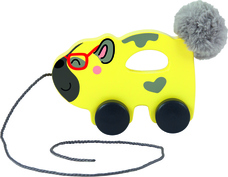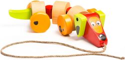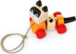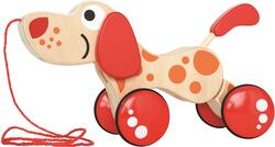 Drevená hračka, rozmery balenia v mm: 180x58x161                                                                                        Psík na špagátiku, vyrobený  z prírodného dreva. Je vybavený šnúrkou a malými drevenými kolieskami, vďaka ktorým bude skvelo  dieťa sprevádzať pri jeho prvých krokoch. Vďaka ergonomickému tvaru navyše podporuje ďalší rozvoj uchopovacieho reflexu dieťaťa.  Ideálna hračka pre deti od 12 mesiacov.  Psík má mäkký plyšový chvostík, ktorý podporuje senzorický rozvoj dieťaťa prostredníctvom dotykov. Materiály použité pri výrobe hračky majú požadované certifikáty a sú natreté netoxickými farbami.