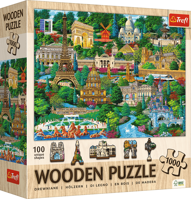 Hľadáte perfektné puzzle pre nadšencov puzzle? Vyberte si toto drevené puzzle s 1000 dielikmi, ktoré zobrazuje slávne pamiatky Francúzska!