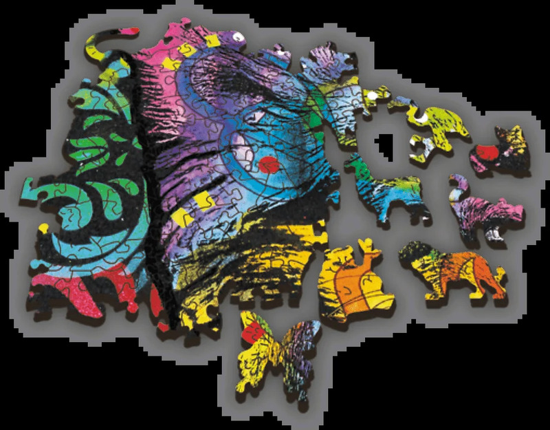 Vysoká kvalita a precízne spracovanie laserom, až 50 unikátne tvarovaných dielikov, ostatné dieliky v nepravidelných tvaroch, puzzle je obojstranné – z jednej strany obrázok, z druhej strany vzor.