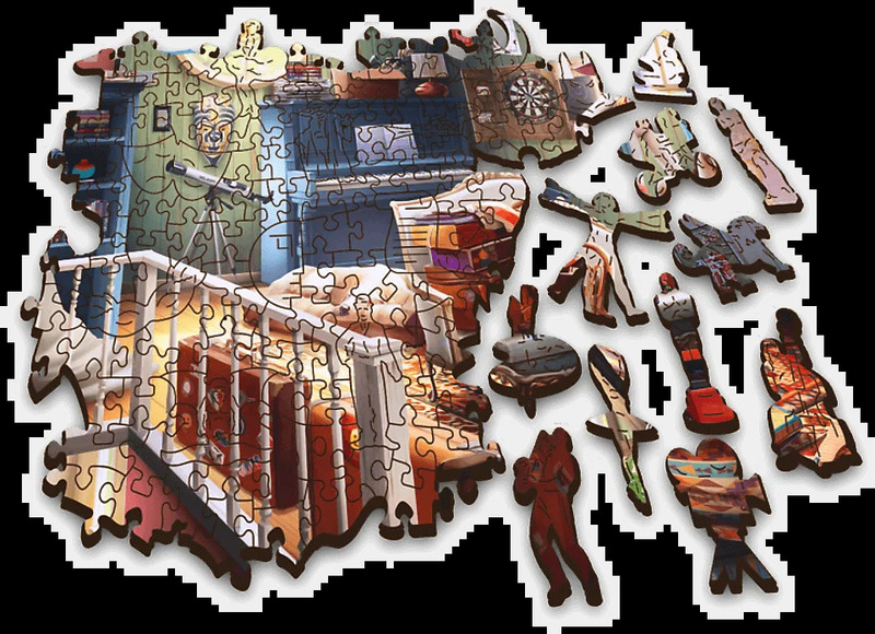 Vysoká kvalita a precízne spracovanie laserom, až 50 unikátne tvarovaných dielikov, ostatné dieliky v nepravidelných tvaroch, puzzle je obojstranné – z jednej strany obrázok, z druhej strany vzor.