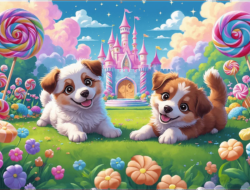 Svet plný úsmevov je 30-dielna skladačka navrhnutá pre malých milovníkov psov. Po zložení vytvorí skladačka obrázok s rozmermi 270 x 200 mm zobrazujúci dve šteniatka v farebnej krajine s hradom v pozadí.