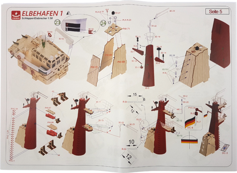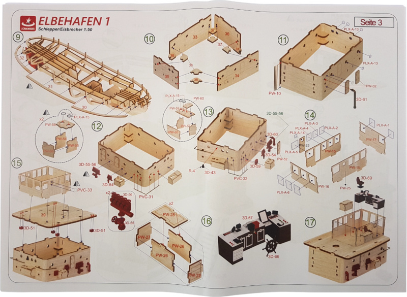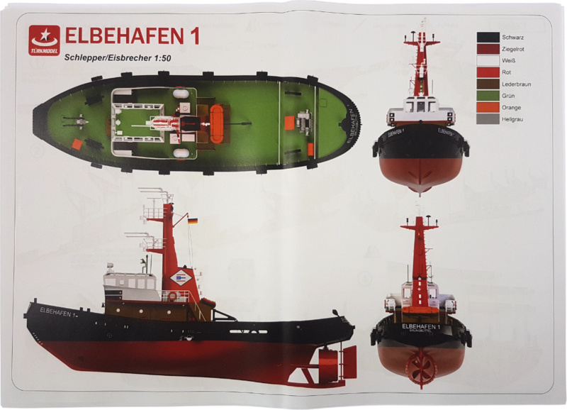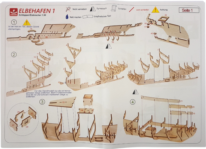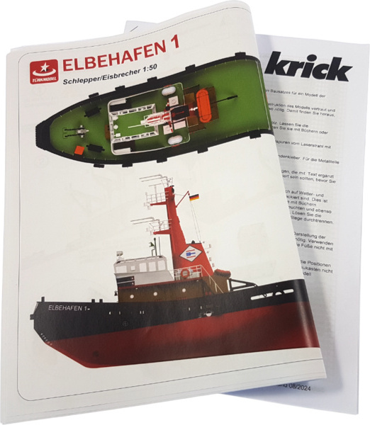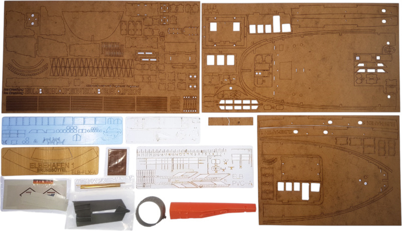 Stavebnica makety lode Elbehafen 1 v mierke 1:50. Dĺžka modelu 605 mm. Stavba lode je vhodná pre pokročilých modelárov. Model obsahuje diely na výrobu, ako drevený preglejkový trup doplnený o lišty opláštenia a paluby. Drevené diely sú presne a čisto laserom rezané. Ďalej model obsahuje kvalitné diely z resinovaného 3D tisku a maketové a konštrukčné diely. Súčasťou stavebnice je stavebný plán. Konštrukcia je klasická s kýlom, priečnymi žebrami a plaňkovým opláštením. Do modelu je možné doplniť LED osvetlenie, čo je v manuáli naznačené (obsiahnuté sú samotné LED a odpory, ďalšie elektrické komponenty a akumulátor je nutné doplniť).