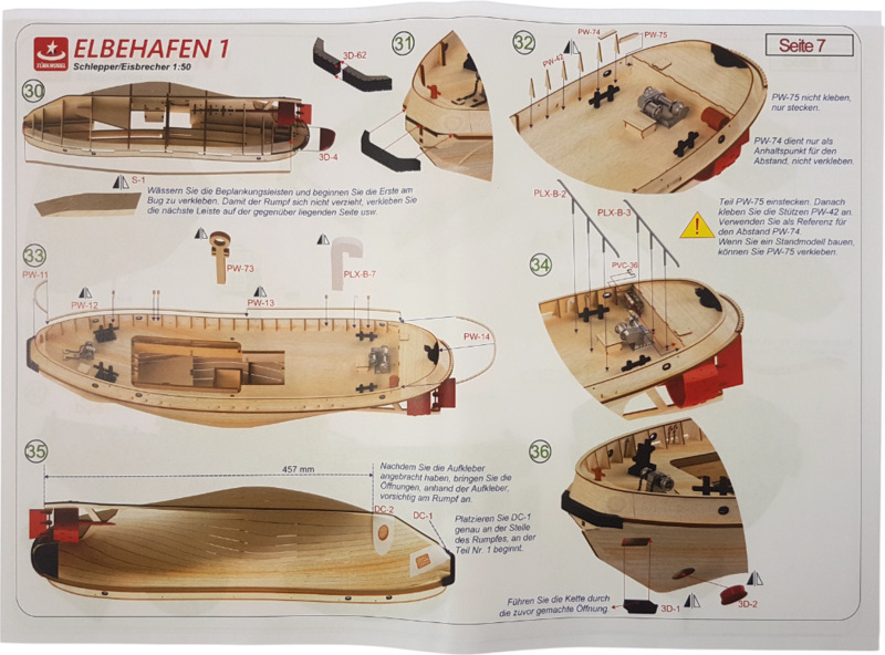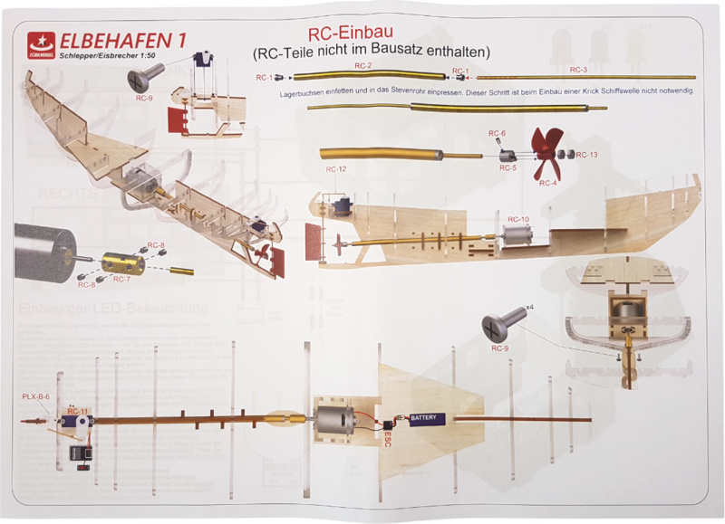 Set obsahuje obrázkový manuál, ktorý obsahuje postup stavby trupu, nástaveb a vybavenia, vrátane zástavby pohonu a elektroniky. Na výkresoch sú nakreslené montážne zostavy, ich kompletácia a to vrátane maketových detailov.
