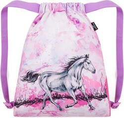 Farebný látkový vak na prezuvky alebo cvičebný úbor s motívom koní a s bezpečnými reflexnými prvkami. Široké popruhy sa nezarezávajú do ramien a dĺžku možno pomocou plastovej spony ľahko nastaviť.