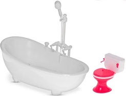 Vaňa striekajúcu vodu s toaletou pre malú bábiku.