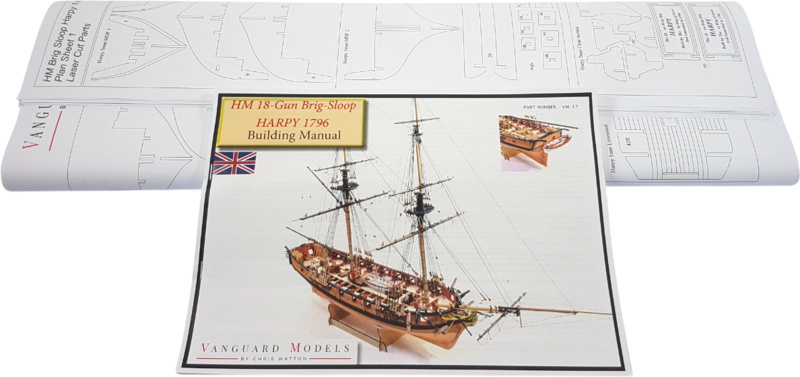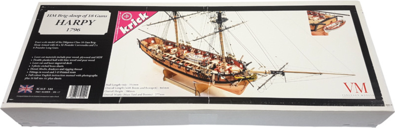Stavebnica neplávajúceho modelu lode Vanguard Models HM Brig Harpy 1796 1:64. Obsahuje veľké množstvo detailov vrátane spracovanej spodnej paluby s plošinami, pecami a kajutami. Nosníky hornej paluby zodpovedajú mierke čo do veľkosti a rozteče, takže môžete ponechať odkryté časti hornej paluby pre pohľad dovnútra, alebo ju úplne zakryť pre realistickosť. V balení sú diely pre túto náročnú stavbu. Konštrukcia modelu je klasická s kýlom, žebrováním a dvojitým plaňkovaním.
