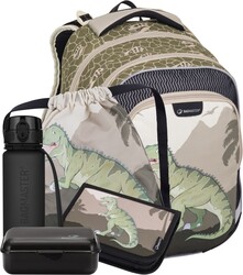 Školský batoh LUMI je ideálny pre malých prieskumníkov od 1. do 3. ročníka. Ponúka nielen priestor pre všetky školské potreby, ale aj ergonomický chrbtový systém na podporu správneho držania tela školáka. Motív dinosaura prinesie do školy kúsok praveku, zatiaľ čo reflexné prvky zaisťujú bezpečnosť na každom kroku. Sada obsahuje všetko pre malých prieskumníkov: batoh, peračník, sáčok na prezuvky, box na olovrant a fľašu.Sada pre malých školákov od 1. do 3. triedy obsahuje