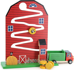 Tri drevené balíky sena kĺžu po dráhe z farmy priamo do nákladiaka s otváracími dvierkami. Deti si precvičujú presnosť pohybov, učia sa vnímať príčinu a následok a vymýšľajú si vlastné príbehy o živote na vidieku. Hračka v sebe spája pohyb, logiku aj fantáziu, a pritom prináša radosť z objavovania a jednoduchej hry, ktorá nikdy neomrzí. Labyrint pomáha deťom pochopiť základný princíp príčiny a následku. Keď dieťa položí balík sena nahor, sleduje, ako skĺzne dole a skončí v aute. Jednoduchým spôsobom tiež zoznamuje s pojmami ako gravitácia a pohyb.