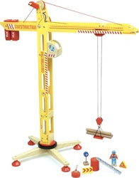 Dajte nový rozmer Vášmu stavenisku a vrhnite sa na stavbu tých najvyšších budov so správnym žeriavom. Svojimi impozantnými rozmermi sa hračka stane neprehliadnuteľnou dominantou detskej izbičky. Množstvom starostlivo stvárnených detailov, kabínou, protizávažiami a mačkou nadchne každého fanúšika stavebnej techniky. Vďaka širokej podstave je stabilná a umožňuje bezpečnú hru. Ponúka široké možnosti manipulácie, celým žeriavom je možné plne otáčať, bremeno je možné posúvať a pohodlne zdvíhať pomocou dvojice kľučiek. Medzi dodávaným príslušenstvom nájdete pohyblivé figúrky žeriavnika a robotníka, plošinu, magnet, rôzne bremená, ale aj značky nevyhnutné na ohraničenie prebiehajúcej práce. Vyrobené z masívneho dreva a odolnej preglejky, ošetrené atraktívnymi nezávadnými farbami.