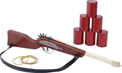- Obsahuje drevenú pušku, 20 gumičiek a 6 mini plechoviek