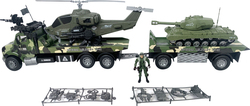 Obsahuje ťahač, vrtuľník, tank, figúrku vojaka, príslušenstvo pre vojaka.