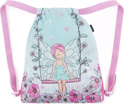 Mäkká ružovomodrá taška na chrbát alebo na školský batoh pre malé dievčatá. Do priestranného vrecka sa zmestia papuče alebo súprava na telesnú výchovu. Dĺžku ramenných popruhov možno ľahko nastaviť.