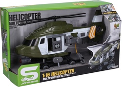 Svetelné a zvukové efekty tlačidlom na krídle. Stlačením páčky pod dverami sa otáča hlavná vrtuľa. Kolieskom na konci krídla sa otáča vrtuľa v krídle. Manuálny navíjací hák.