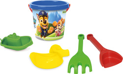 Letná súprava s obrázkami postavičiek z kresleného filmu Tlapková patrola sa skladá z 5 prvkov : 1-litrové vedro, lopatka, hrable, sitko a napájadlo