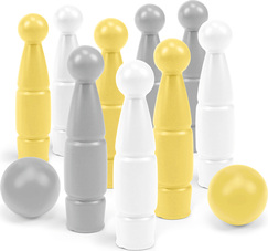 Žlto – bielo - sivá bowlingová súprava je fantastický spôsob, ako sa spoločne zabaviť. Sada obsahuje 9 farebných kolkov a 2 gule. Hračka je starostlivo vyrobená z bezpečných a odolných materiálov pre deti. Bowlingová súprava zo série Toys in Trends podnieti fantáziu najmenších, rozvinie ich motorické a manuálne zručnosti, presnosť pohybov, koordináciu ruka-oko a rovnováhu. Hra má tiež pozitívny vplyv na priestorové myslenie a rozvíja schopnosť odhadovať vzdialenosti, učí disciplíne a koncentrácii. Keď pozveme kamarátov na hru, naše dieťa sa bude môcť začleniť medzi rovesníkov už od útleho veku a bude si rozvíjať svoje sociálne zručnosti. Najmenší sa budú môcť naučiť pravidlá bowlingu na základe férovej súťaže.