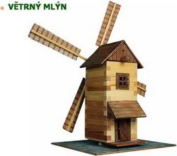 V dávnych dobách sa obilie mlelo vo veterných mlynoch,preto sú veterné mlyny neodmysliteľnou súčasťou starovekých dedín.Aj ty si môžes zostaviť veterný mlyn do svojej dedinky.V stavebniciach Walachia nájdete všetko potrebné na zostavenie veterného mlynu.Sú tu uložené drevenné hranolky s prierezom 9x9mm,diely na štíty a strechy, kartónové výseky okien a dvier,papierové potisky všetkých plôch a podrobný schématický montážný plán.Súčasťou stavebnice sú aj krátke kapitoly z histórie ľudovej architektúry a vedomostí v odbore stavebníctvo.Jednotlivé stavby sa zlepujú lepidlom na drevo a papier (lepidlo nie je obsahom).Pre deti od 8 rokov.