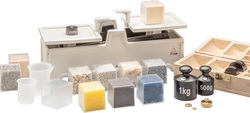- 10 kociek naplnených rôznymi materiálmi ako je perie, vlna, pemza, štrk, balzové drevo, smrek, pena, plast, hliník a železo, a tiež 9 prázdnych kociek.