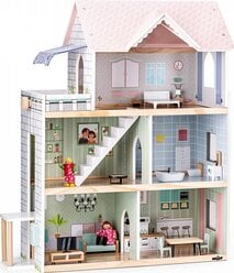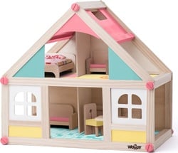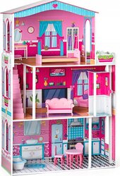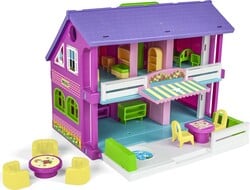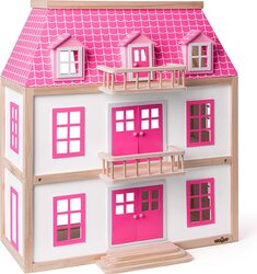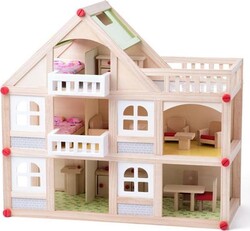Dizajnový domček s plastovými balkónmi a rozľahlou terasou v hornom poschodí nechá vyniknúť klasickej elegancii mestských prvorepublikových víl.Vďaka otvoreným priestorom je ľahko prístupný vo všetkých miestnostiach. Je vyrobený v kombinácii materiálov: masívne drevo a preglejka .