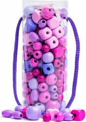 Táto sada obsahuje v praktickej uzatvárateľnej tube drevené korálky rôznych tvarov v odtieňoch ružovej a fialovej farby. Súčasťou sú aj tenké šnúrky s koncovkou k prevliekaniu.