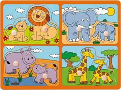 ých návrhárov je určené pre najmenšie deti. Jeden diel puzzle tvorí mláďa a druhý dospelý. Úlohou dieťaťa je logicky a podľa tvaru priradiť zvieratka k sebe. Puzzle je vybavené úchytmi pre snadněší úchop.Woody Puzzle pre najmen