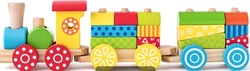 Vláčik s potlačou z dreveného materiálu. Úlohou dieťaťa je nasunúť kocky vlaku na tyčky tak, aby bol naložený celý náklad. Pri tejto činnosti deti zdokonaľujú jemnú motoriku, logiku a koordináciu pohybov.