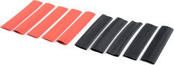Zmršťovacia bužírka na káble a konektory 4,7 mm červená + čierna. Zmrští sa až o 50%, dĺžka 68 mm, 5 + 5 ks v balení (červená + čierna).