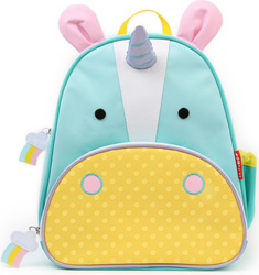Krásny batôžtek s motívom jednorožca. Batoh má prednú oddelenú kapsu ideálnu na desiatu s extra vreckom na pastelky či iné drobnosti. Na strane je umiestnené priestranné sieťované vrecko vhodné na pitie. Prepracované detaily batôžteka ladia s veselými motívmi na zipse.