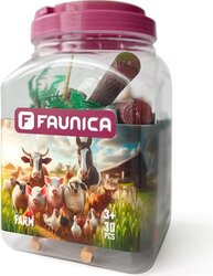 V tube plnej domácich zvierat nájdu deti 11 figúrok: kravu, teľa, ovcu, kozu, koňa, prasa, psa, kohúta, sliepku, hus a kačicu a množstvo príslušenstva (stromy, kamene, ploty)|