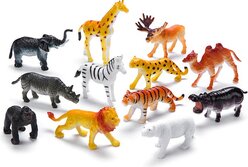 Obsahuje 12 figúrok: zebru, hrocha, žirafu, nosorožca, slona, ??ťavy, leva, ľadového medveďa, losa, tigra, geparda a gorilu.